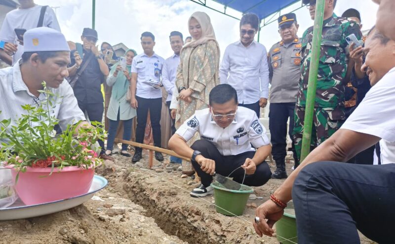 Kota Langsa – Walikota Langsa Jeffry Sentana S Putra, SE, melakukan Peletakan Batu Pertama Pembangunan dan Perbaikan 18 unit Rumah Layak Huni Program CSR PT. Sarana Multigriya Finansial (SMF) di Gampong Sidorejo, Kecamatan Langsa Lama, Kota Langsa.