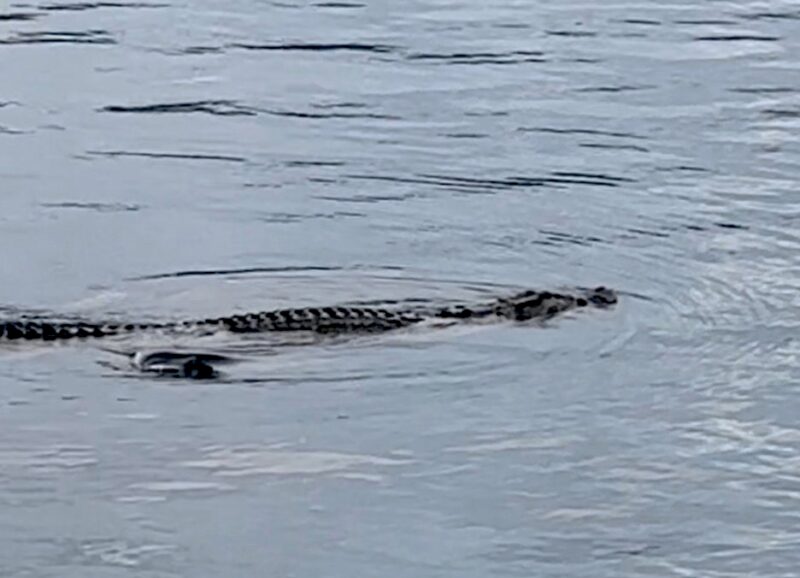 Berdasarkan laporan pandangan mata di lapangan, buaya tersebut diperkirakan memiliki panjang mencapai enam meter.